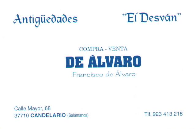 Antigüedades Rurales El Desván De Álvaro Calle Mayor, 68 - 37710Candelario(Salamanca) Tlf. 923 41 32 18 |
