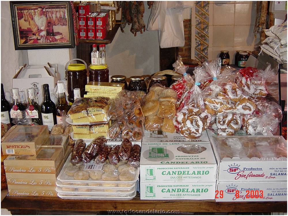 Venta de Tríllos de piedra (pedernal), Tinajas, Arcas, Mesas, Cómodas, Artesas, Cuartillas (medidores de grano) . Se mandan por transporte a toda España. Chorizos, Salchichones, Jamones, etc. Dulces típicos y hornazos. |
